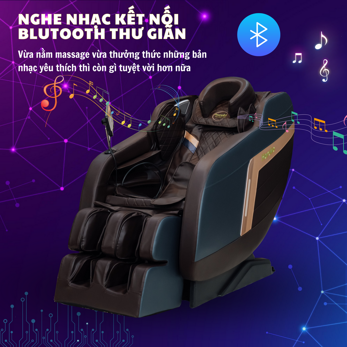 Chỉ cần kết nối bằng bluetooth từ điện thoại với ghế, bạn đã có thể thả mình vào không gian âm nhạc yêu thích với âm thanh sống động, chân thực