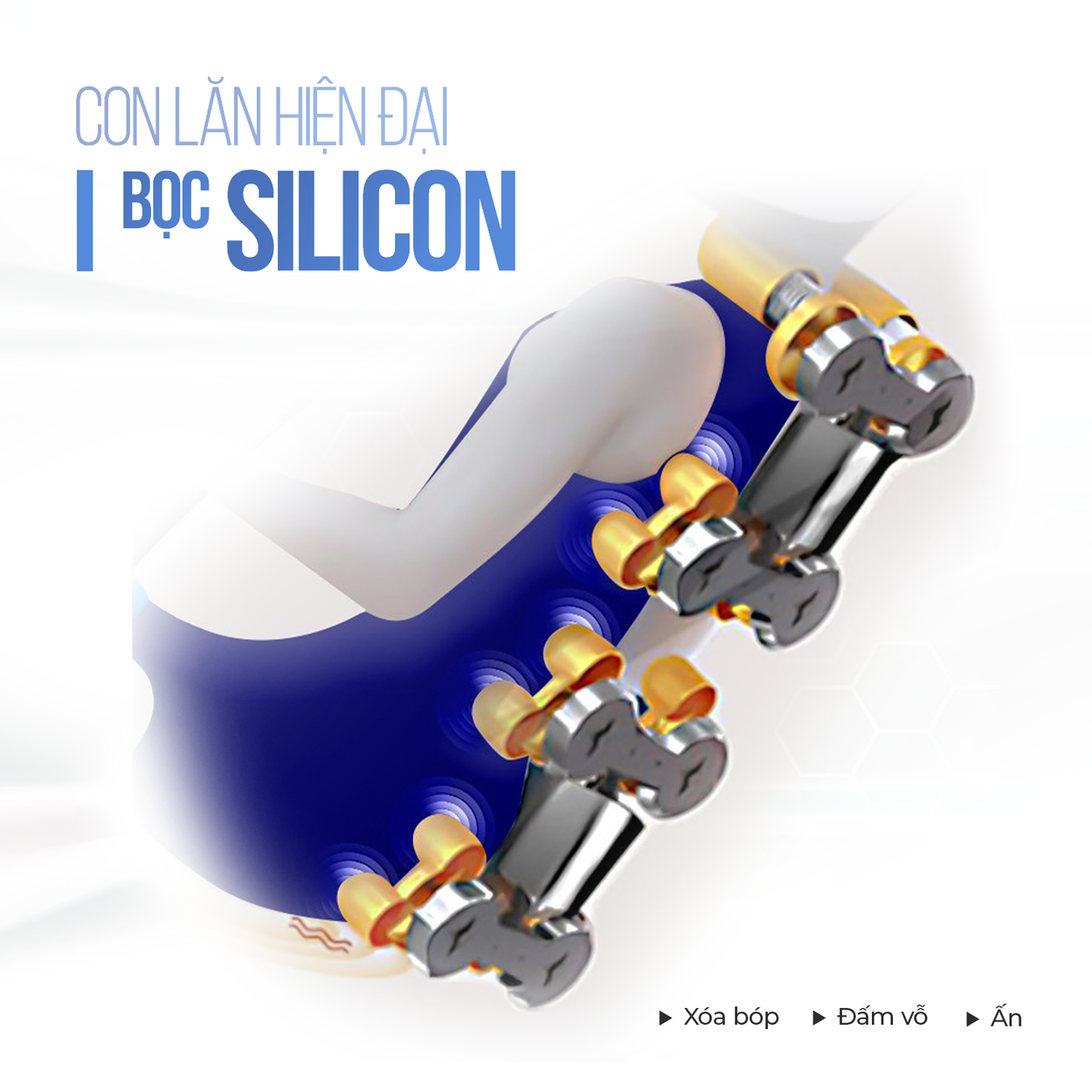 Hệ thống con lăn với các kỹ thuật massage chân thực như bàn tay con người, con lăn sẽ tác động theo ba chiều: dài, rộng, sâu cùng thao tác xoay tròn, tạo ra các thao tác xoa, miết và day ấn tại chỗ.